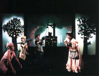 かかし座独特の美しいシルエット・アートの世界を追求し、生の語りや演技 を大切にして、それを十分に生かした舞台創りをしている。 単なる映像の域を超えた影絵劇団。 |